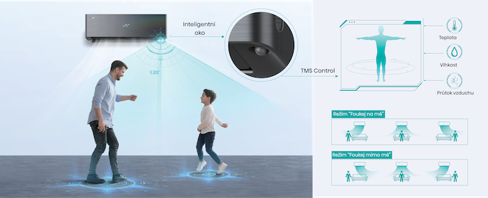 Technológia Hisense Smart Eye rozpoznáva pohyb a polohu osôb v miestnosti, čím umožňuje inteligentné prispôsobenie teploty, vlhkosti, smeru a rýchlosti prúdenia vzduchu. Funkcia „Fúkaj na mňa“ nasmeruje chladnejší vzduch priamo na vás, zatiaľ čo režim „Fúkaj mimo mňa“ zabraňuje nepríjemným pocitom z prievanu či príliš studeného vzduchu.
