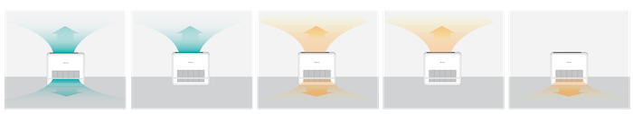 Rôzne kombinácie horného a spodného prúdenia vzduchu zabezpečujú rovnomernú distribúciu teploty a vyšší komfort pri používaní.