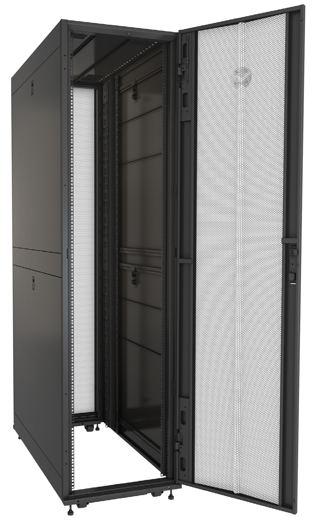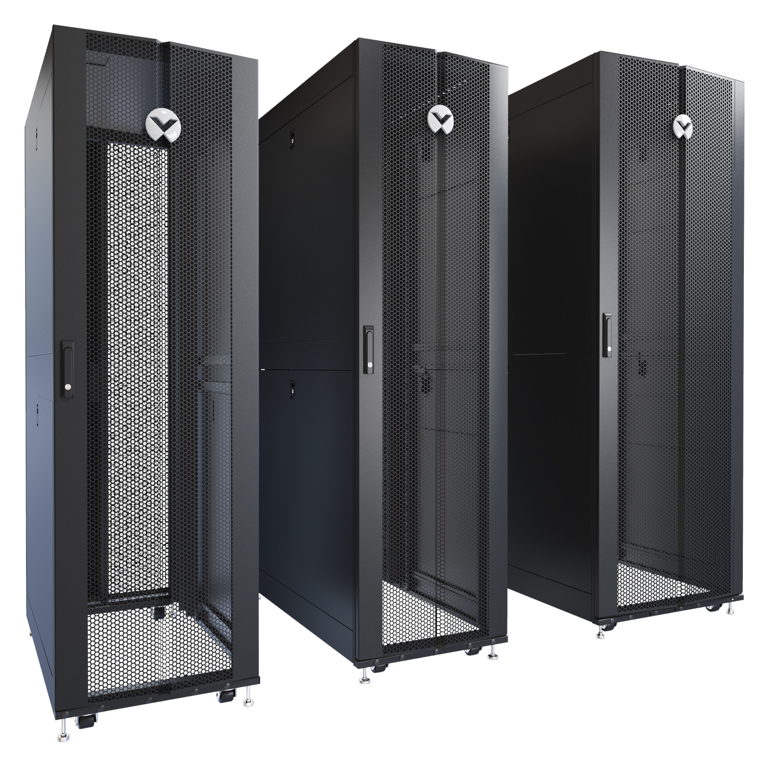 Racky dodávame s rôznymi možnosťami prispôsobenia: perforované alebo plné dvere, priehľadné panely, výsuvné moduly a optimalizované prúdenie vzduchu pre vyššiu energetickú efektivitu.